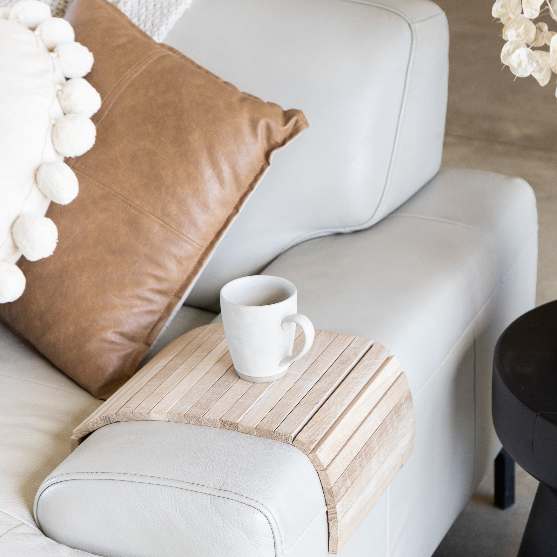 This is where practicality meets style. The Armrest Side Tray has been designed to fit snugly and flat, on a level armed sofa or chair.