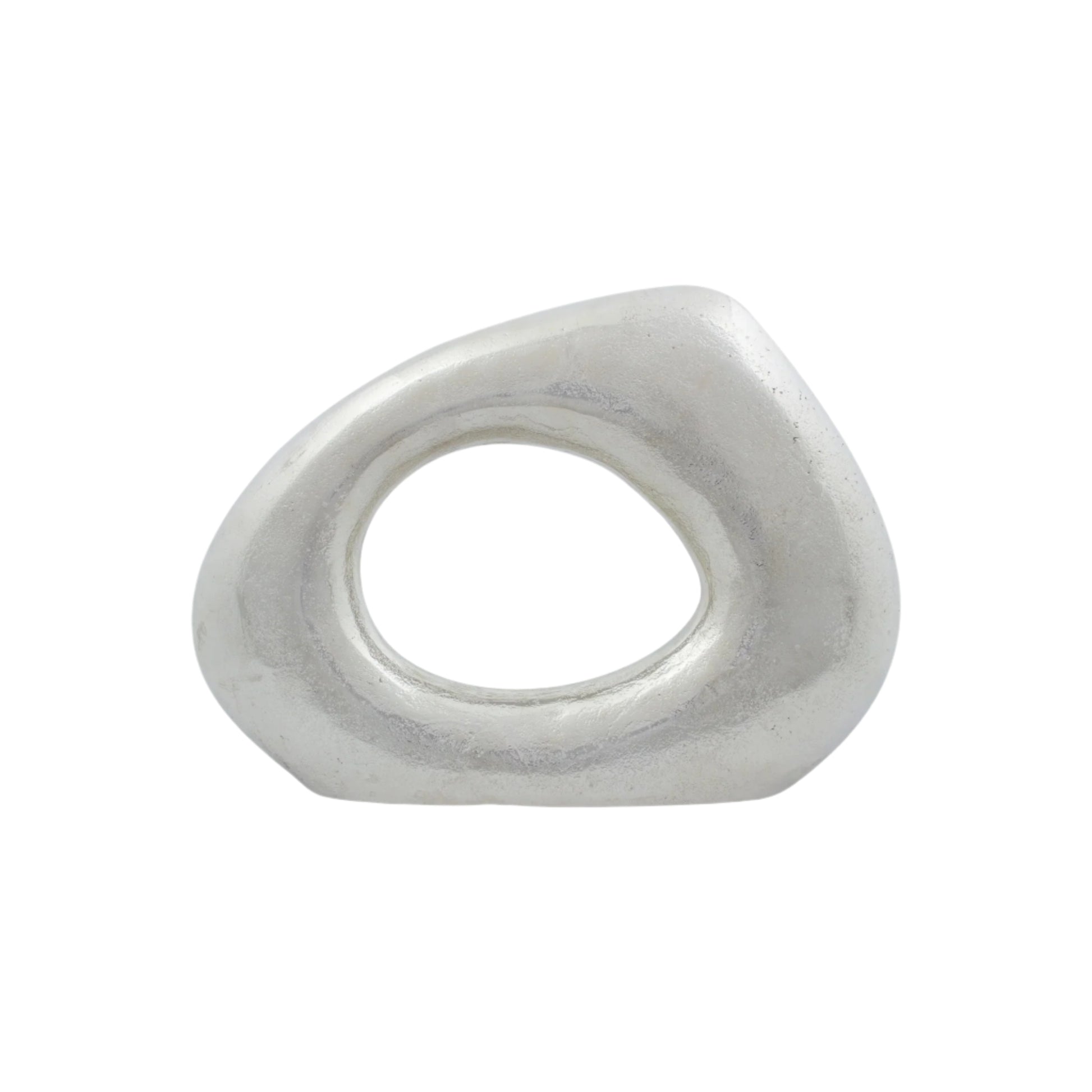 The Oval Sculpture is a stunning piece that will proudly take the spotlight in any room. Its organic shape and nickel finish capture reflections beautifully, and allow it to easily take on the other colours in the space.