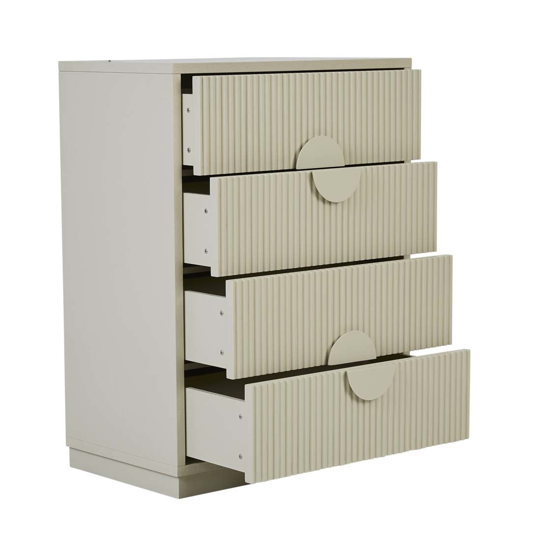 Eye-catching thanks to the distinctive ripple door detail, the Benjamin Ripple Dresser is crafted in durable veneer. It offers 4 spacious drawers for storage and a modern design for impact.