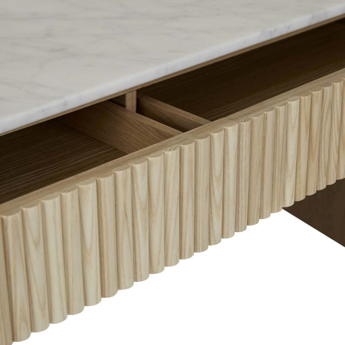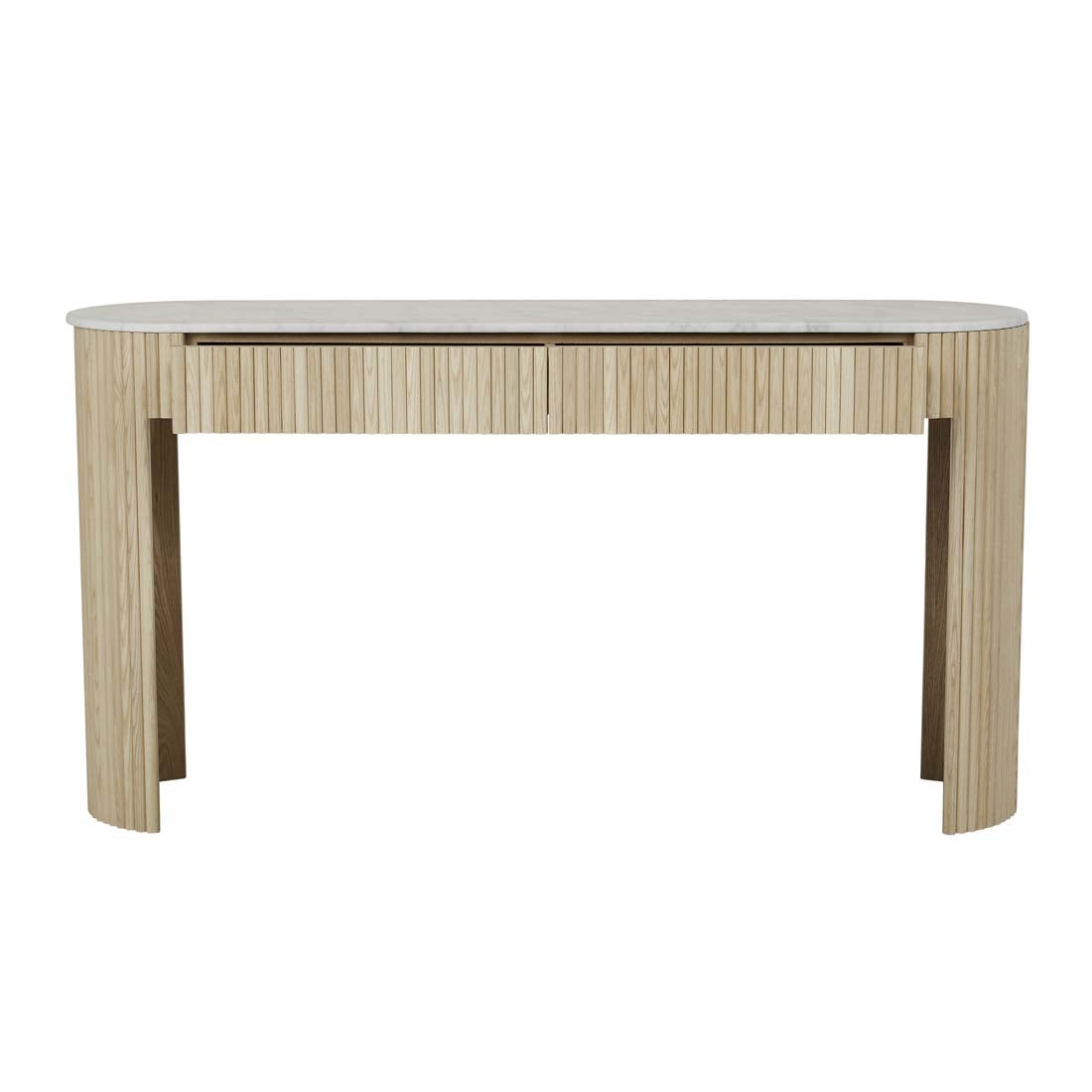 Benjamin Ripple Grand Marble Console - White Marble + Natural Ash