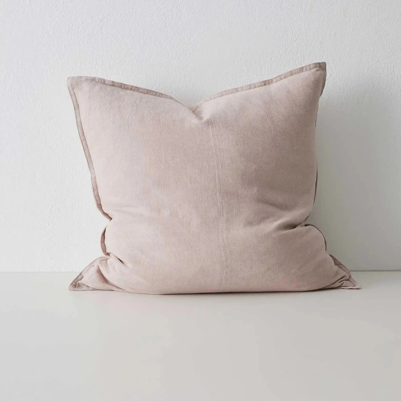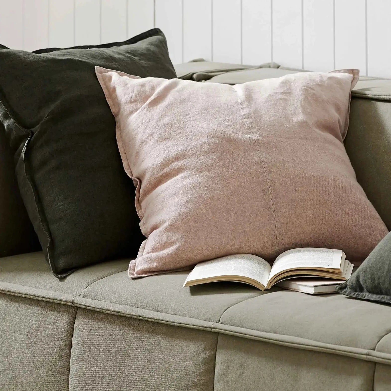 Como Blush is a lush, soft pink — perfect for a neutral setting. This premium linen cushion is stylishly finished with a double stitch French seam edge and panel detail.