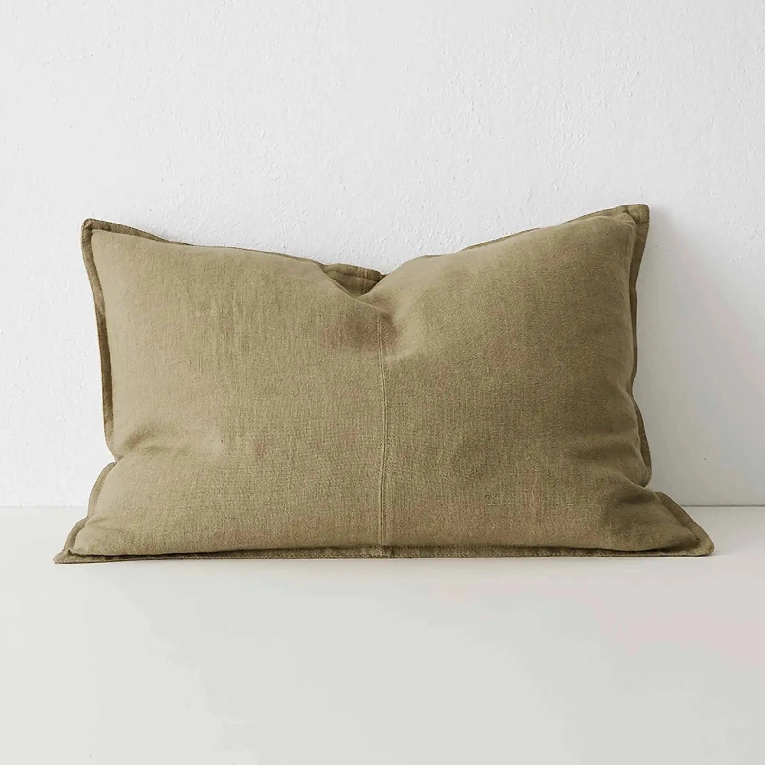 Como Clay is a soft, brown tone that carries a sense of warmth. This premium linen cushion is stylishly finished with a double stitch French seam edge and panel detail.