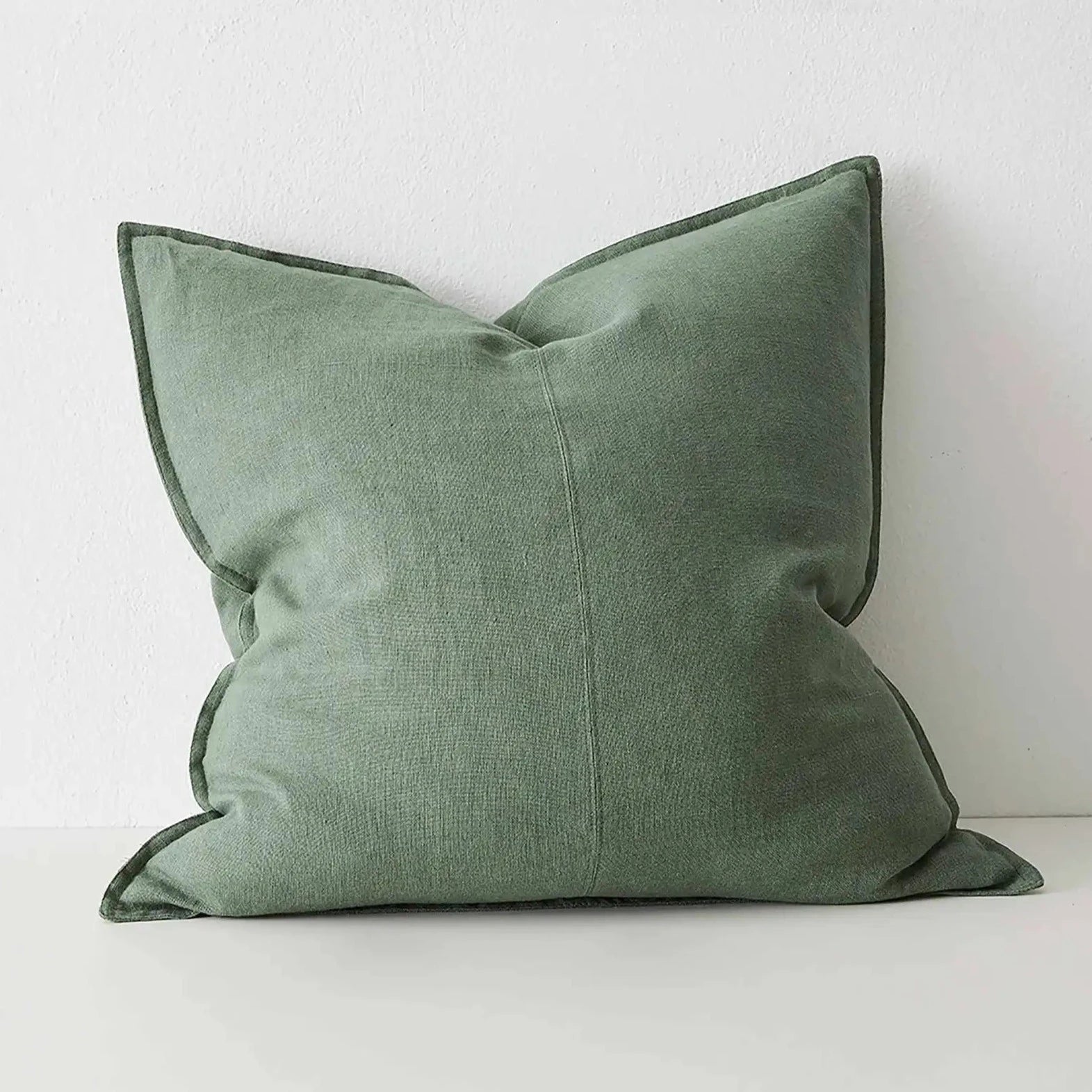 Como Juniper is a cool-toned, medium-green that will sit effortlessly in a neutral setting or with offsetting patterns. This premium linen cushion is stylishly finished with a double stitch French seam edge and panel detail.