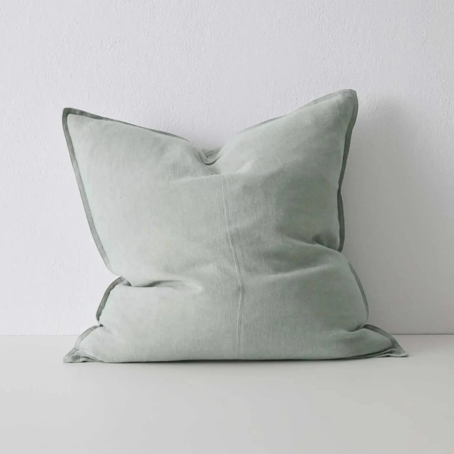 Como Laurel is a soft, eucalyptus green-grey — a versatile and exceptionally calming colourway. This premium linen cushion is stylishly finished with a double stitch French seam edge and panel detail.