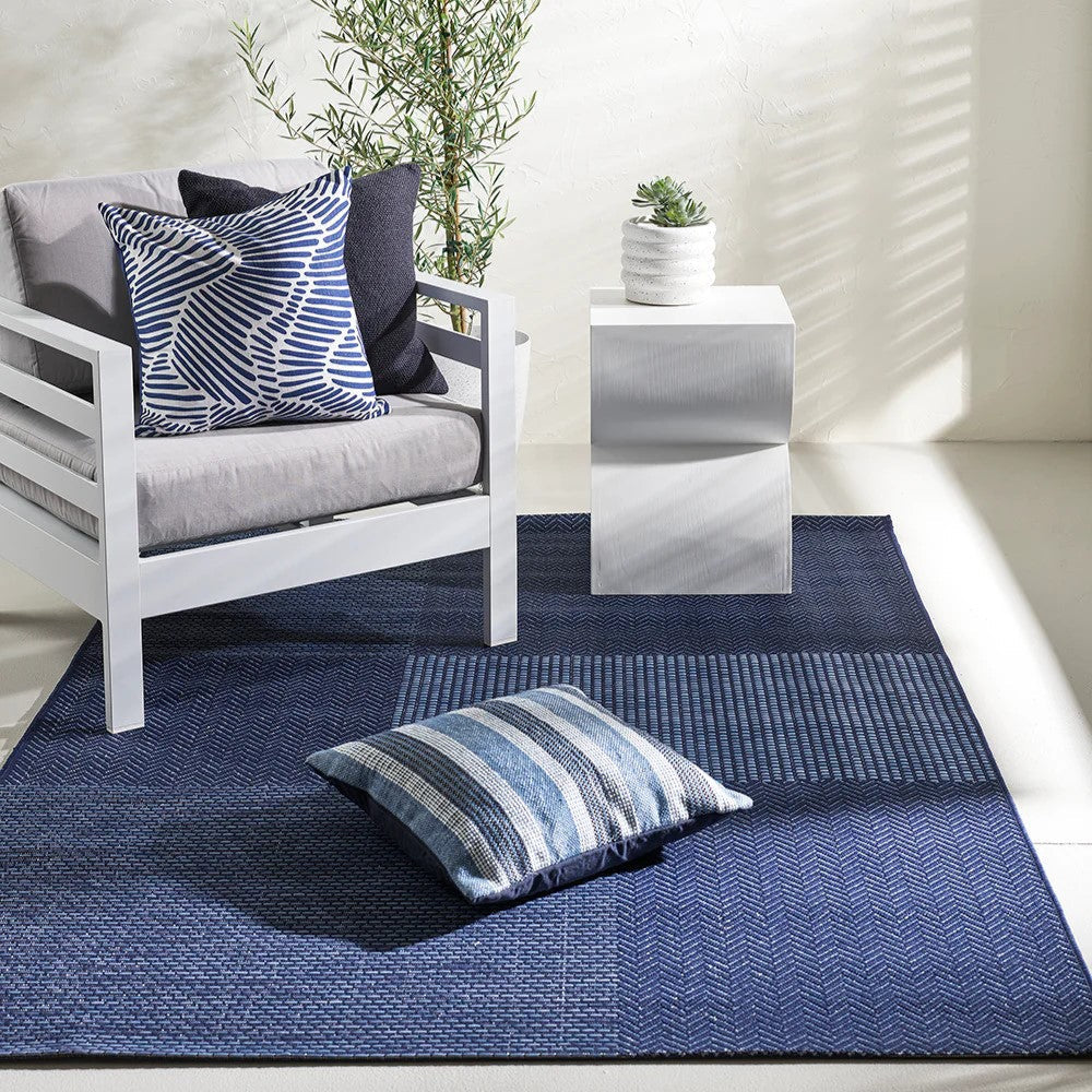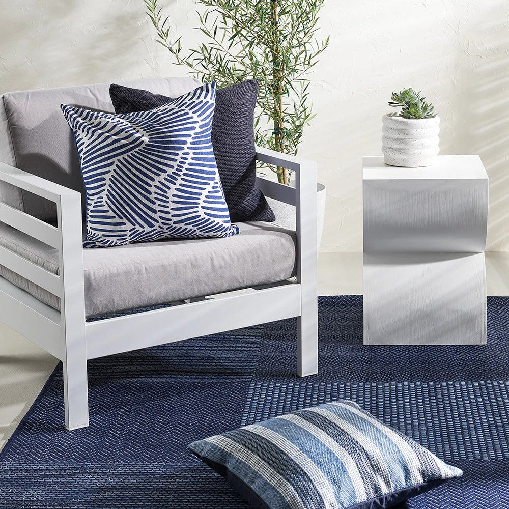 These hand-drawn cushions are sophisticated, relaxed and timeless. The dramatic, graphic pattern will beautifully elevate your outdoor or indoor space. This cool cushion transitions seamlessly from indoor to outdoor settings.