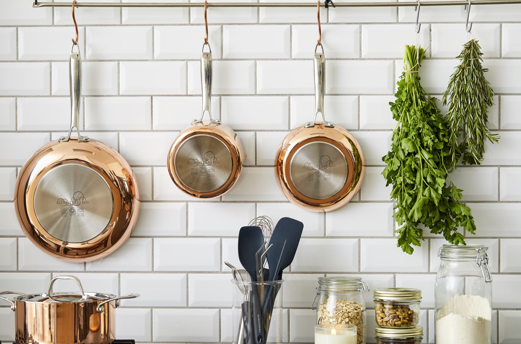 Beautiful, stylish and very functional Blomsterberg frying pan made of copper and stainless steel. A strong aluminium core ensures the pan good use properties, and the outer copper together with the beautiful steel handle gives a nice finish. Suitable for all heat sources - also induction.