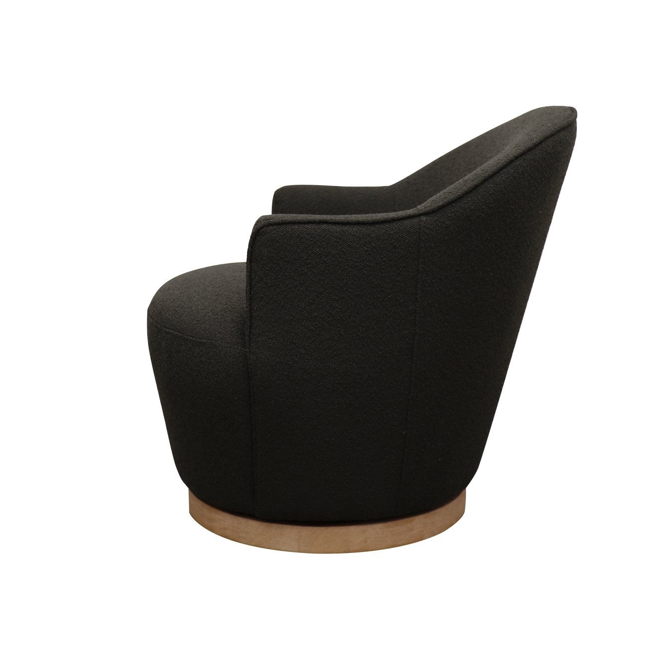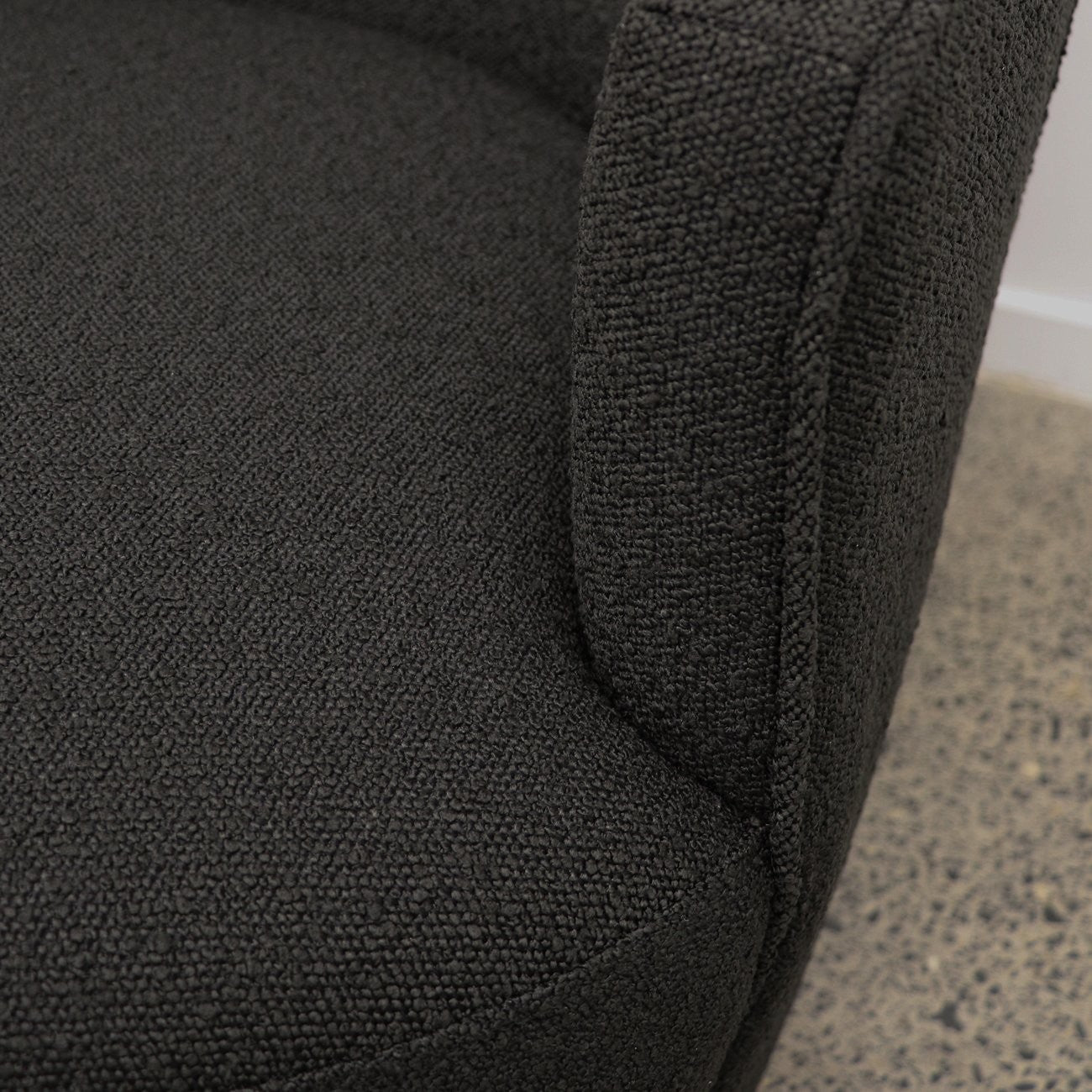 Perfectly proportioned with slim lines the Ferguson Occasional Chair belies it's stature with generous seating. Upholstered in smart boucle fabric in either black or white with a swivel base in light oak colour.