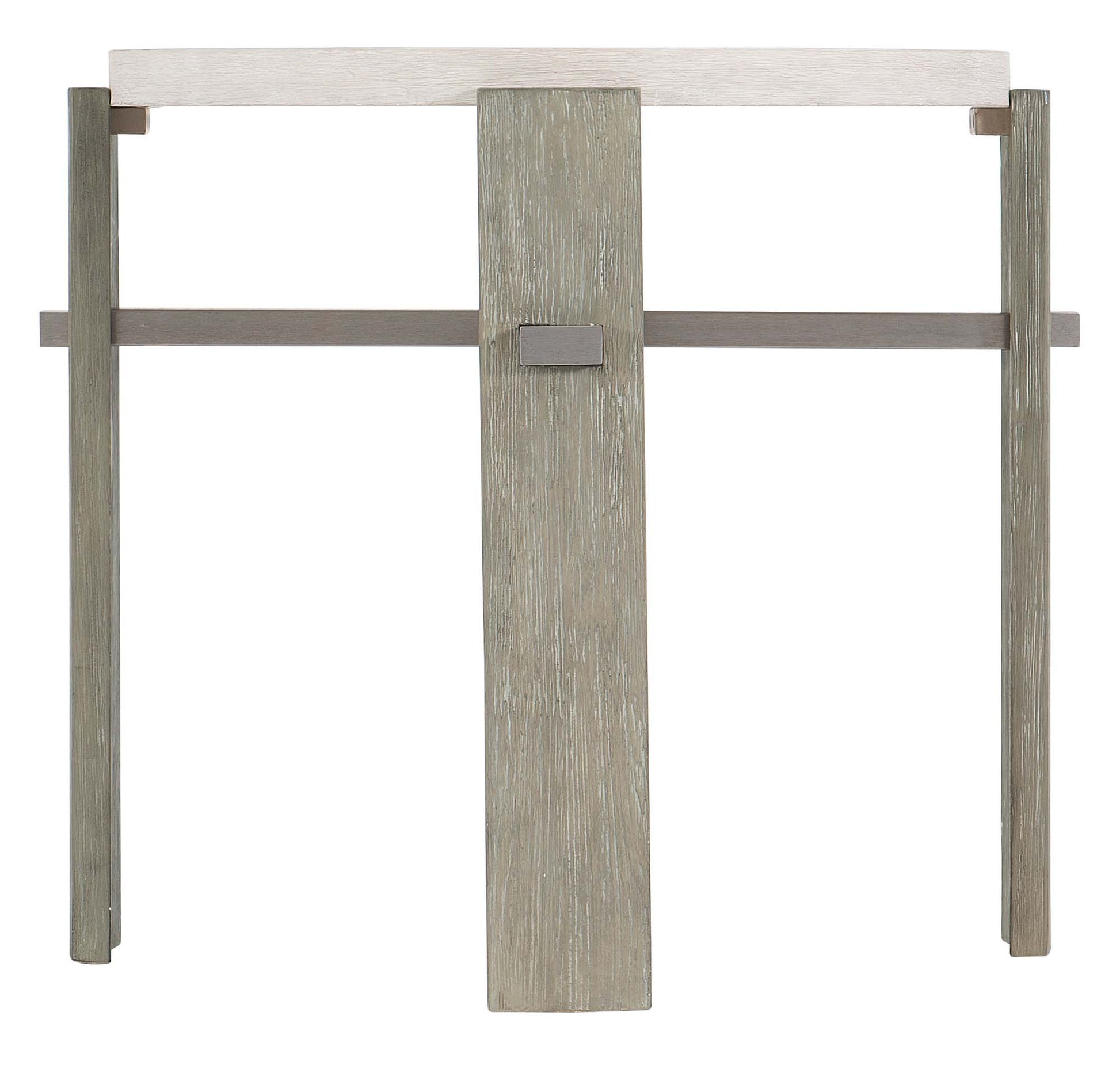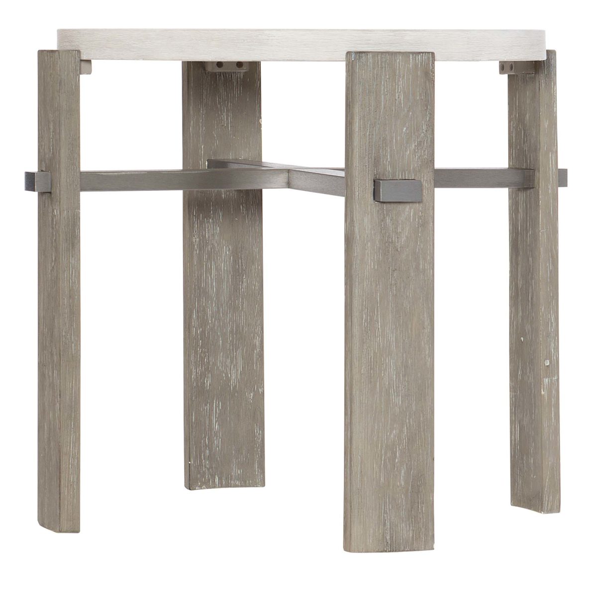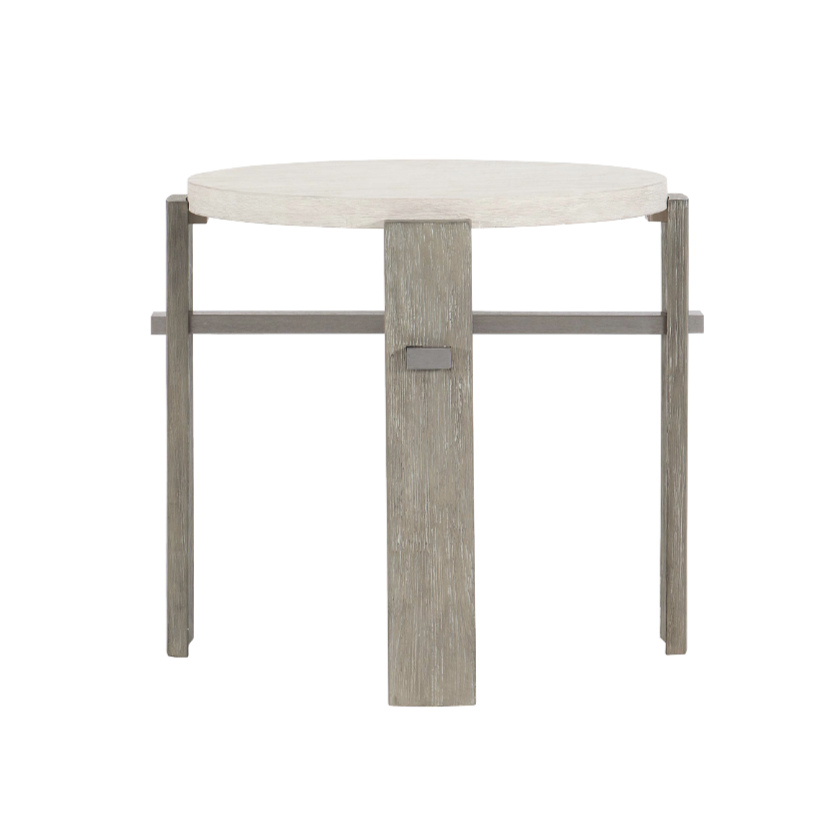 Foundations is a new, refined expression of modern rustic, defined by a minimalist style and relaxed comfort. The Foundations side table features clean lines and an elegant profile. Crafted from contrasting light and dark wire-brushed acacia, its round top rests on rectangular legs joined by a matching stretcher. Smart and sophisticated, this piece is the perfect complement to a modern or traditional interior.