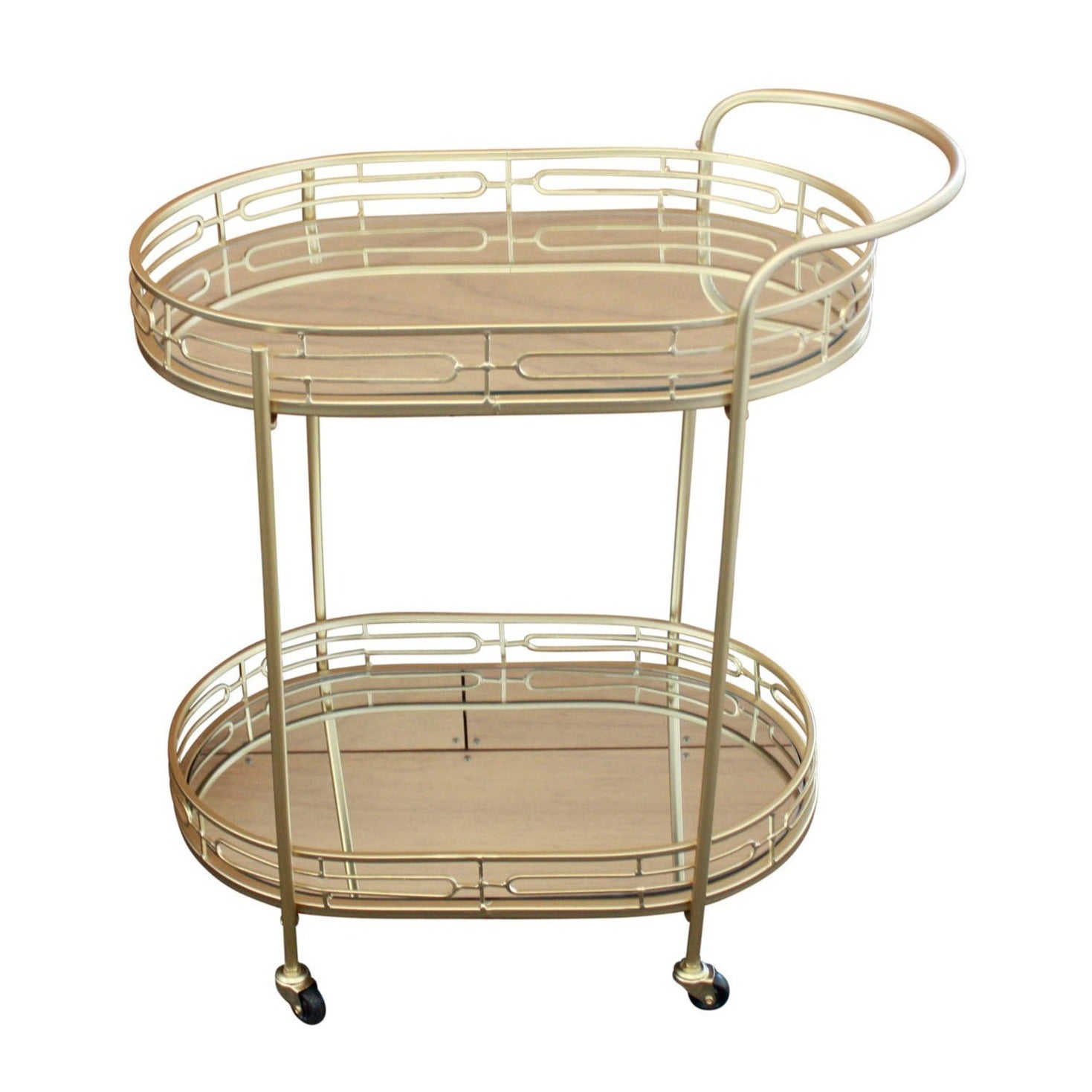 Organise and serve your favourite drinks in style with the Gatsby Oval Drinks Trolley. Crafted from gold metal, and glass, this luxurious trolley features wheels for effortless transportation. Show off your sense of style and make entertaining a breeze!
