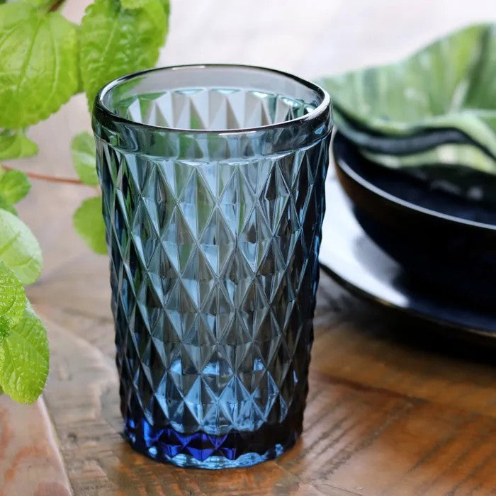 Boost your glassware collection with this stunning set of four Hiball Tumblers in a striking dark blue hue.