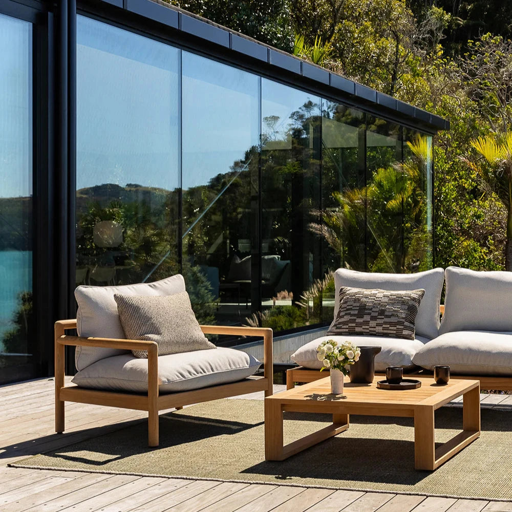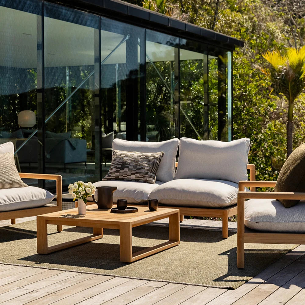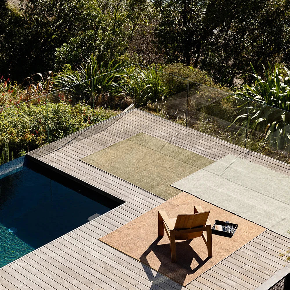 Tightly woven from recycled plastic fibres, the Lonsdale rug’s flatweave design and deep green colourway provides the perfect foundation for contemporary exterior spaces.