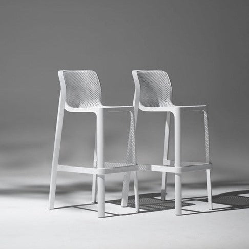 Beautiful contours & contemporary European style! The Net High Bar Stool is 100% Italian Made & Designed. Commercially rated & for both indoor and outdoor spaces.