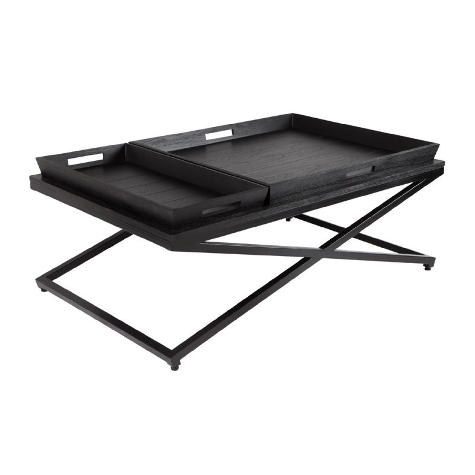The perfect piece for modern living. The clean lines of the grained black finished wood and iron make it an effortless addition to your living room. The removable top trays make it a working piece, perfect for entertaining. Whether it’s coffee for two or dessert for your night of entertaining, the Ballard coffee table is perfect for gathering people.