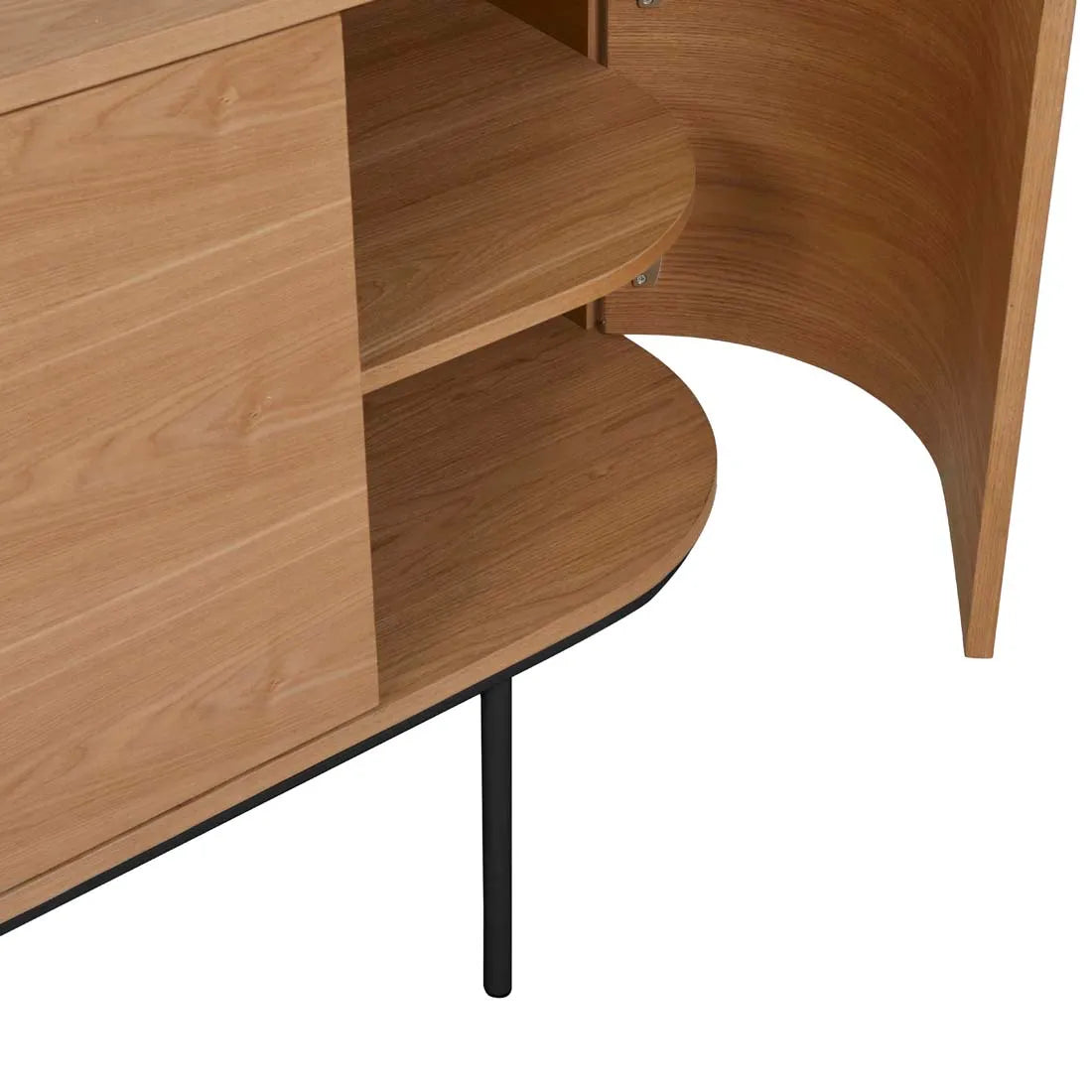 Great for storage in any room the Orson Buffet has svelte, curving corners and exposed legs for modern style. Four cabinet doors open to a spacious interior that will keep items nearby but out of sight. Try this handsome unit in a dining room or living area.