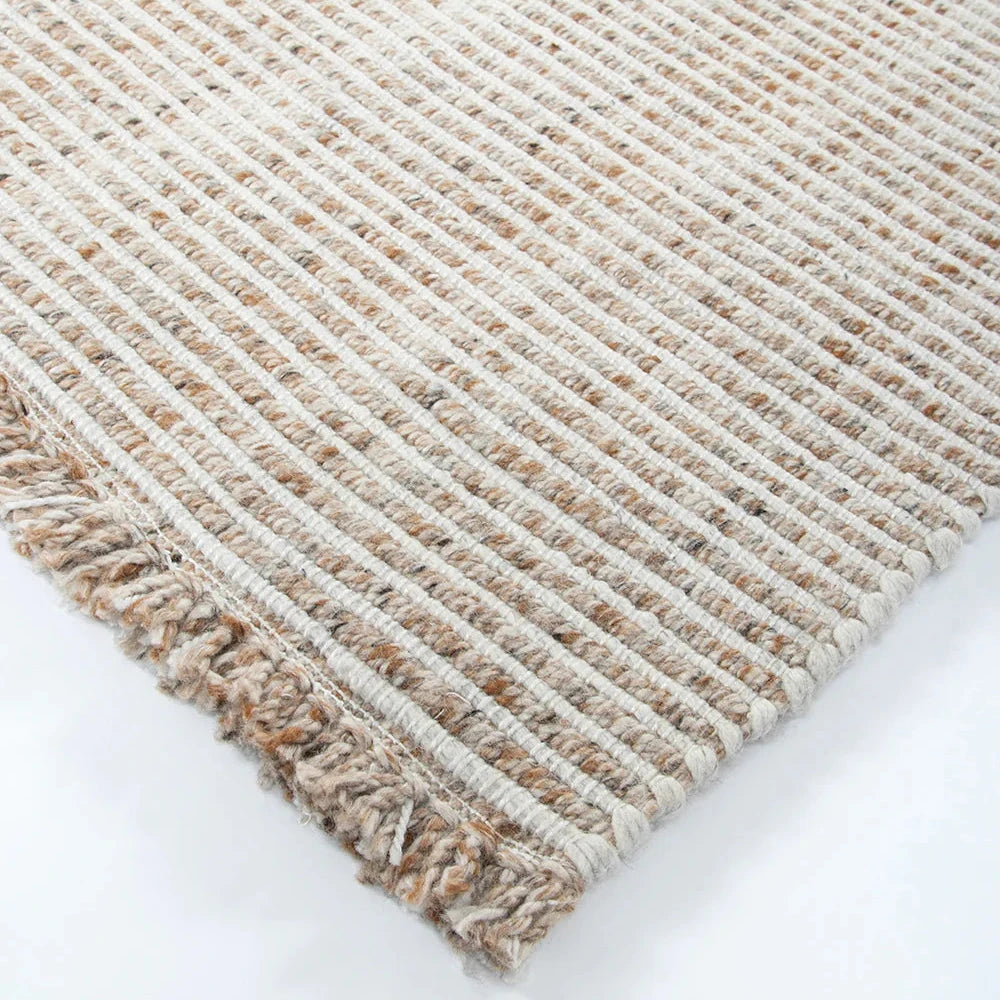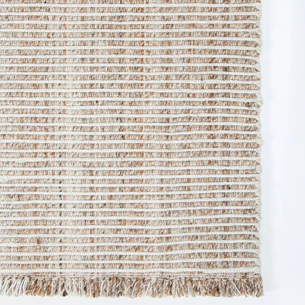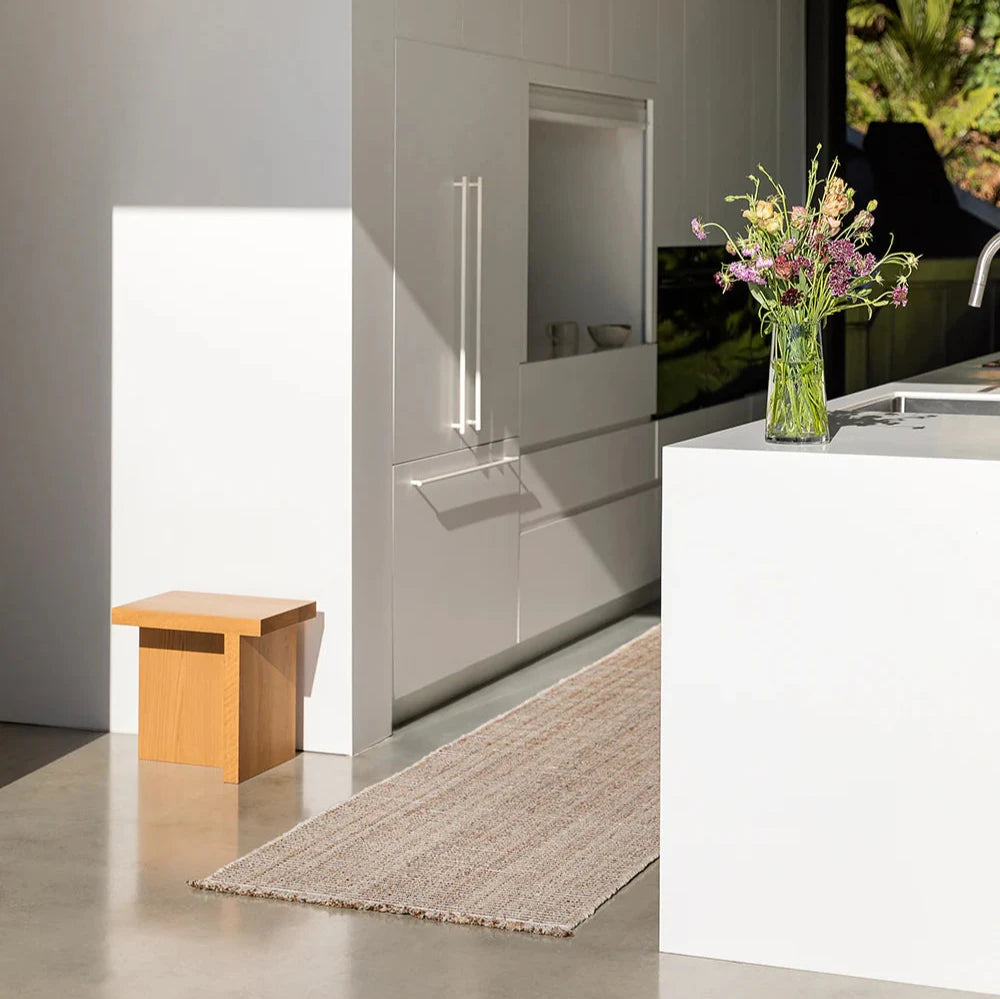 Soft underfoot, the understated design of the Rhodes is ideal for laid-back living spaces. Handwoven in mottled slate and almond tones, the low-profile design is finished with a casual, hand-knotted fringe. The durable nature of this rug makes it suitable for high-traffic areas. This floor runner is crafted using soft, recycled PET yarn, a resilient fibre made from recycled plastic bottles.