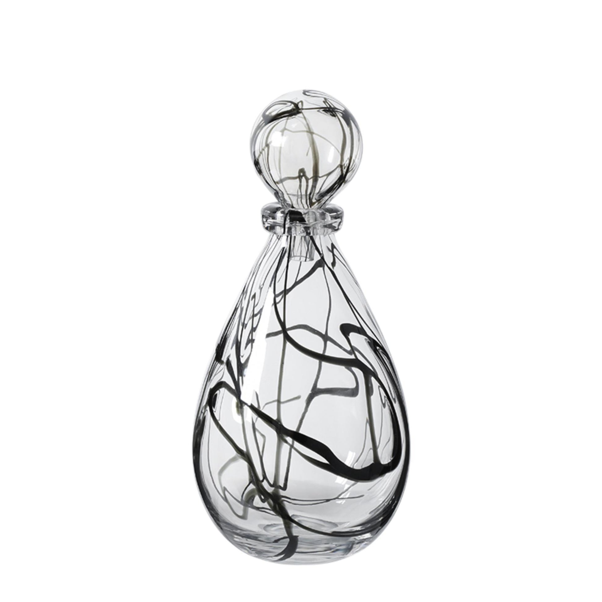 The large Swirl Decanter is expertly crafted from high-quality glass, featuring an intricate black pattern that adds a sophisticated touch to any setting.