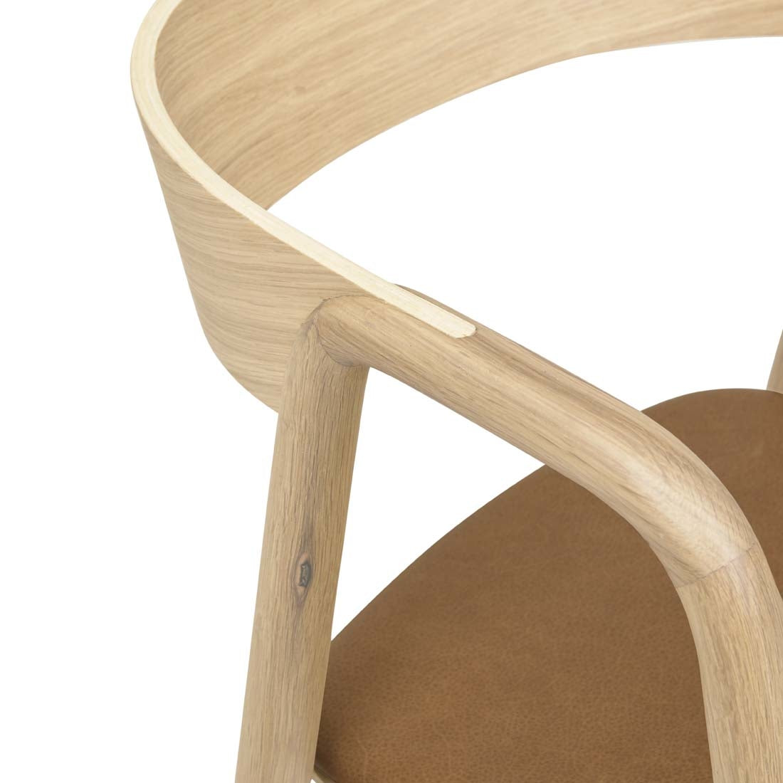 Tolv Inlay Upholstered Dining Armchair - Camel Leather + Light Oak